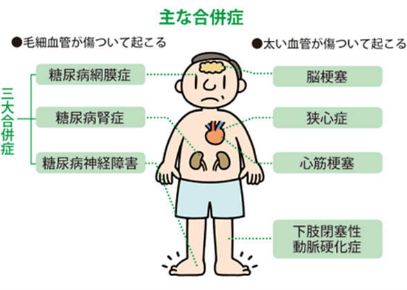 放置すると「糖尿病」を発症し、過剰な糖が血管を傷つけることで 合併症や動脈硬化を引き起こします。