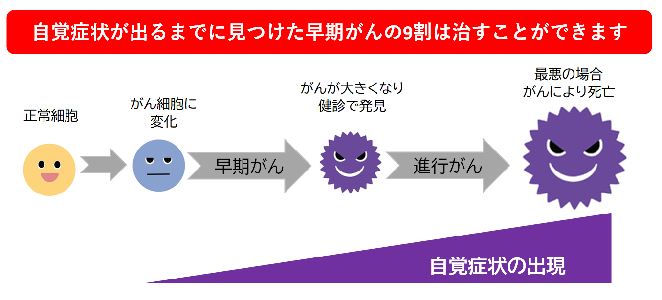 がん検診の目的は、がんを早期に発見し早期に治療を行い、命を守ることです。